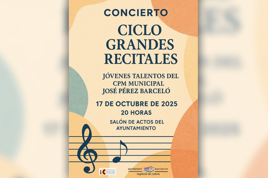 El ciclo de Grandes Recitales de la Concejalía de Cultura regresa este próximo viernes al Salón de Actos del Ayuntamiento de Benidorm con los Jóvenes Talentos del Conservatorio Profesional Municipal de Música José Pérez Barceló. Se trata de una cita musical con entrada gratuita hasta completar aforo, que tendrá lugar a las 20:00 horas.