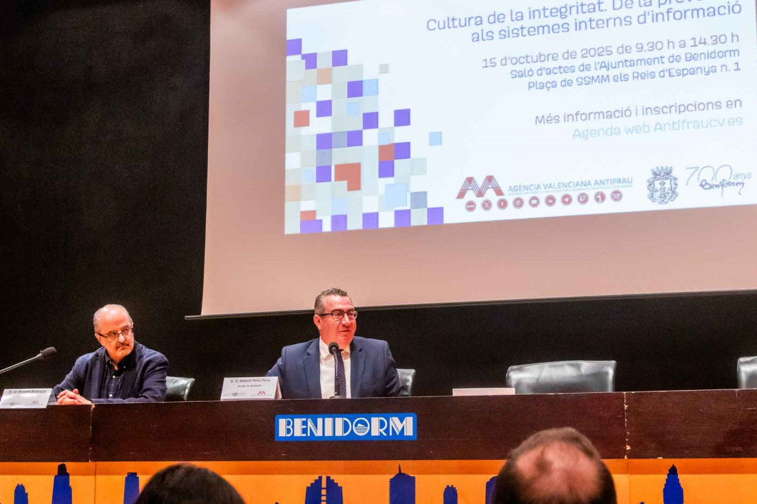 La jornada ha sido inaugurada por el alcalde de Benidorm, Toni Pérez, y ha ofrecido ponencias como ‘El sistema institucional de lucha contra la corrupción I. Desde Naciones Unidas a la Comunitat Valenciana’, ‘Los sistemas de información de la ley 2/2023. La experiencia práctica de la AVAF’, ‘Cultura de la integridad pública y riesgos de fraude y corrupción en la administración pública’, ‘El sistema institucional de lucha contra la corrupción II. El marco valenciano’ y un taller-debate bajo el lema ‘El conflicto de interés: hacia la integridad institucional’.