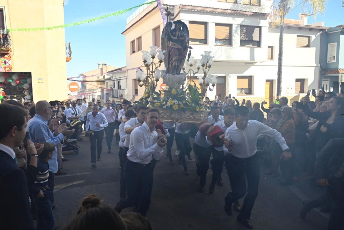 El regreso de la imagen de Sant Rafel a su ermita volvió a convertirse en uno de los momentos más distintivos del calendario festivo nuciero. Siguiendo la costumbre, la imagen fue trasladada desde la Iglesia en la plaça Major hasta la “Capelleta” en un recorrido de más de un kilómetro, a ritmo de traca y con la participación de improvisados costaleros de todas las edades. Las cámaras de À Punt TV registraron el acto, considerado uno de los más singulares de las fiestas patronales.