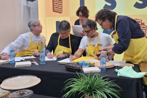 El alcalde Marcos Zaragoza y los maestros chocolateros Rafa Gorrotxategi, Juan Ángel Rodrigálvarez y Juan Rubio fueron los encargados de probar cada uno de los platos en el salón Don Pedro, de la Barbera dels Aragonés. Los participantes y el público pudieron seguir la cata in situ. La tarta de tres chocolates de Sabrina Dannert se alzó con el premio de este concurso. Su receta será elaborada por los restaurantes que participan en La Vila Gastronómica durante una de las citas del calendario de esta marca gastronómica el próximo año.
