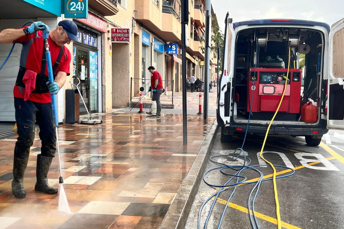 Finestrat refuerza la limpieza viaria con una campaña intensiva de desincrustación y desinfección en las zonas más transitadas