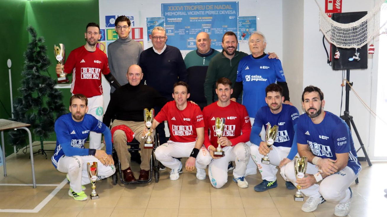 Benidorm acogió este domingo la final del XXXVI ‘Trofeu Nadal de Benidorm. Memorial Vicent Pérez Devesa’ de pilota valenciana, en la que Pere Roc II, Héctor y Carlos se alzaron con el título tras imponerse en una partida muy disputada a José Salvador, Conillet y Bueno. El encuentro se celebró en el Trinquet Vicent Pérez Devesa, que registró una notable presencia de aficionados.