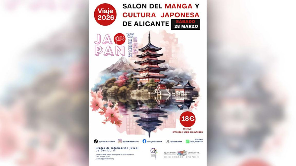 La Concejalía de Juventud del Ayuntamiento de Benidorm ha organizado un viaje al Salón del Manga y la cultura japonesa de Alicante, que se celebrará el próximo 28 de marzo en el Recinto Ferial de Alicante. La iniciativa está dirigida a jóvenes interesados en este evento, que reúne exposiciones, actuaciones musicales, entidades y asociaciones especializadas, merchandising, exhibiciones de artes marciales, concursos y una amplia oferta gastronómica.