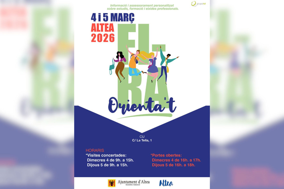 La concejalía de Educación del Ayuntamiento de Altea anuncia la celebración, un año más, de la Feria Orienta’t. Una iniciativa que tiene por objeto informar, asesorar de forma personalizada sobre estudios, formación y salidas profesionales a los estudiantes y población en general; como ha indicado la edil de área, Xelo González.