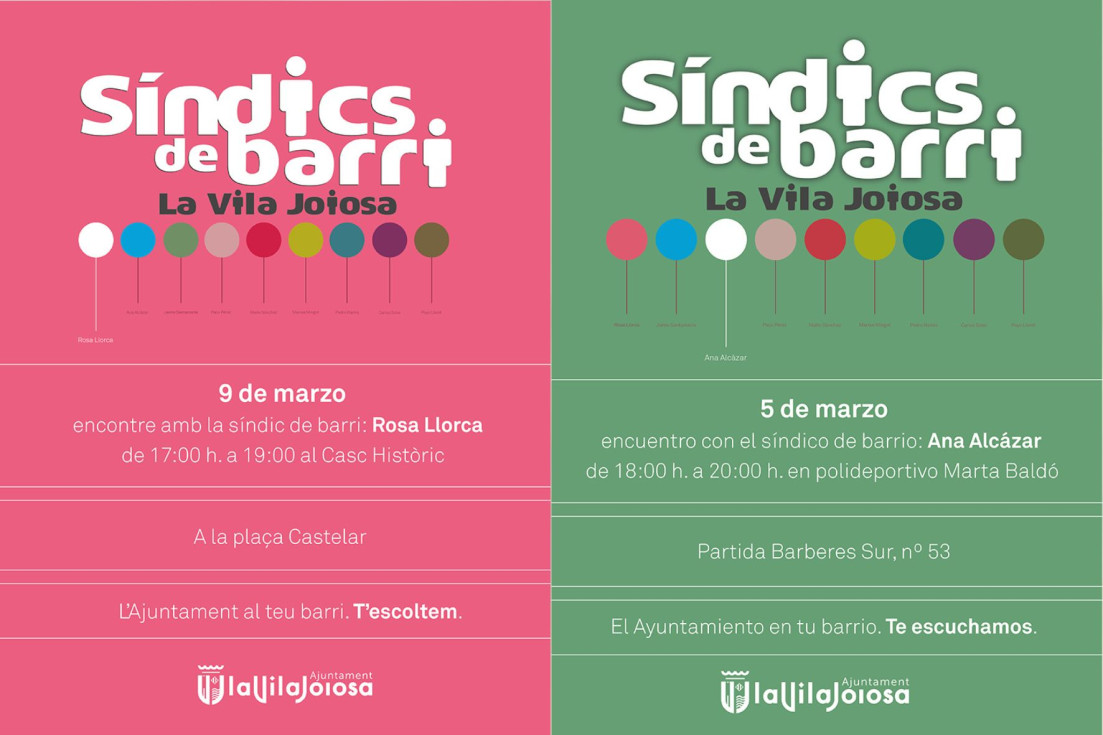 El Ayuntamiento de Villajoyosa pondrá en marcha la próxima semana una nueva ronda de encuentros del programa Síndic de Barri 2026, con dos reuniones previstas en Barberes-Costera Pastor y el casco histórico dentro de un formato renovado que apuesta por una atención más directa y participativa.