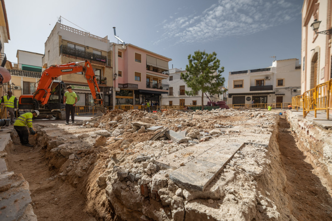 Tras actuar en un tramo de la calle Federico García Lorca, los trabajos se centran ahora a la plaza Mayor, donde se abordará la transformación integral de este espacio emblemático en el que se ubica la Parroquia de San José.