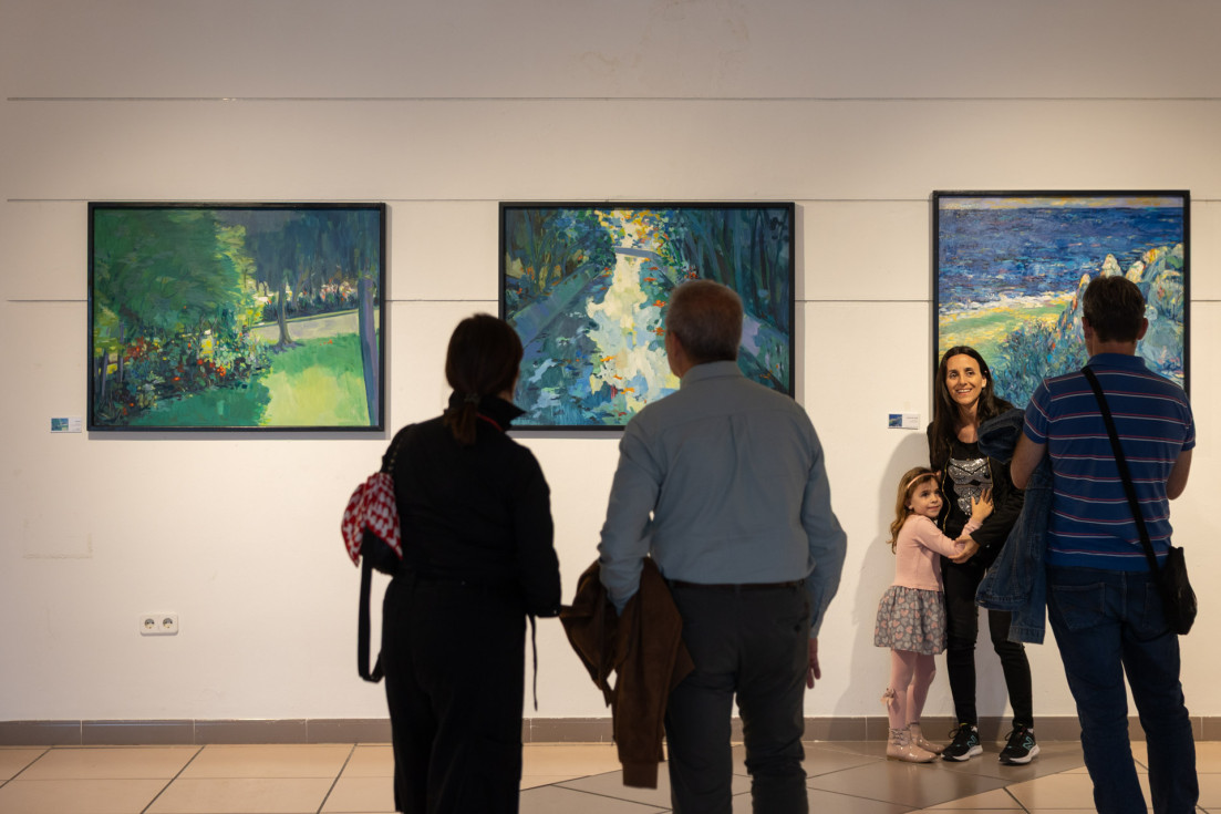 Por su parte, Garbis Adrian Hofman, de origen rumano y residente en Alicante, presentó una propuesta centrada en explorar tanto el macro como el micro drama del cosmos, abordando la vida humana y su relación con la naturaleza. A través de una paleta que a veces es monocromática, Hofman profundiza en la carga emocional de sus obras, resaltando contrastes y texturas que transmiten intensidad expresiva.
