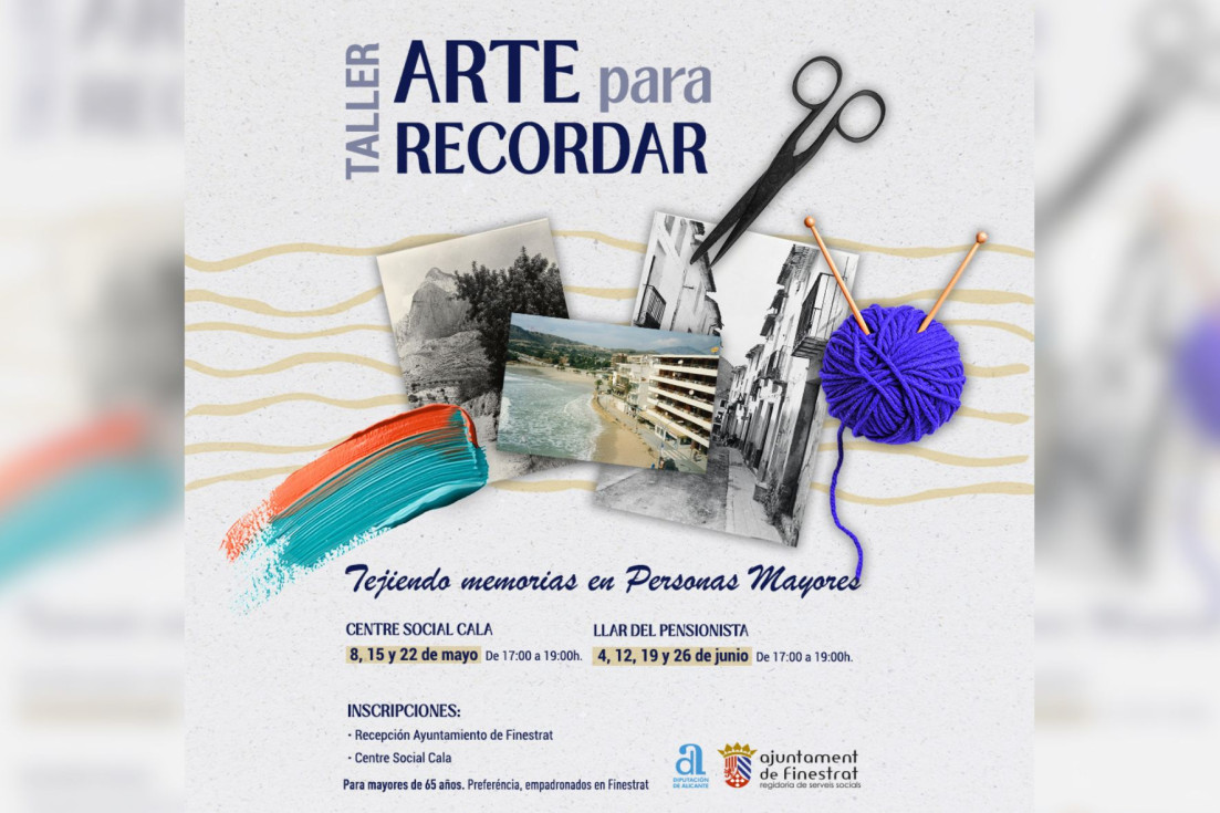 El Ayuntamiento de Finestrat, a través de la concejalía de Servicios Sociales, ha puesto en marcha el taller “Arte para recordar”, una propuesta dirigida a personas mayores de 65 años con el objetivo de estimular la memoria, reforzar habilidades psicomotrices y fomentar el intercambio generacional a través de la creación artística.